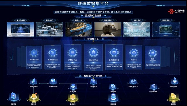 在本次展览专门设置的数据展区,中国联通以“算网”“数智”“数实”三大融合为主题,重点展现了在新型数据产业底座、高质量数据集和行业赋能应用三方面取得的创新示范成果。一是依托超大规模数据汇聚、多模态数据全栈处理和全程可管可控的联通大数据平台,自主研发构建“云网算数模用安”一体化的新型数据产业底座,贯通“采、洗、标、测、用、评”全流程闭环数据流水线,实现业务流、数据流、价值流全面协同,为助力数据要素流通利用打下坚实基础。二是整合700PB企业海量数据(维权)资源,基于全自研全流程数据集处理平台工具链,构建形成网络运行、公文公告、客服语音等46TB多模态、高价值、知识型企业内部通信领域高质量数据集。联合多方共建、共研、共创形成多源融合的外部行业高质量数据集,覆盖装备制造、消费品、医疗健康等十大重点行业,加速数据优势向智能优势的转化。三是数智融合深度赋能实体应用。聚焦公司内部网络运营、办公管理、市场营销、服务感知等七大领域40+场景,服务各专业层级提质增效。对外联合中国商飞、中国船舶、国家博物馆等头部企事业单位及各级政府部门,锻造新型工业、数字文博、智慧医疗等100+行业灯塔应用,服务30+国家部委和近百个地方政府,打造平台化生态体系,助力各行各业数智转型。