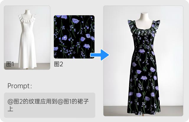 用 Vidu Q1 参考生图把裙子换上今年夏天最时髦的碎花花纹,变身最潮达人。