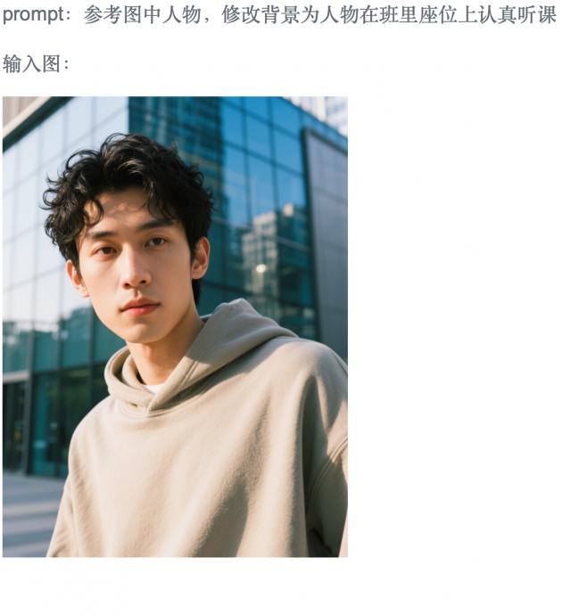 在案例 3 中,Nano Banana 的人物左眼双眼皮消失,Midjourney 人物凭空多了副眼镜,即梦的人物发型和卫衣服装都发生了变化,Kontext 脸上多了很多斑点。Vidu 则在人物脸部细节特征和服饰细节特征上都做到了非常准确地还原。
