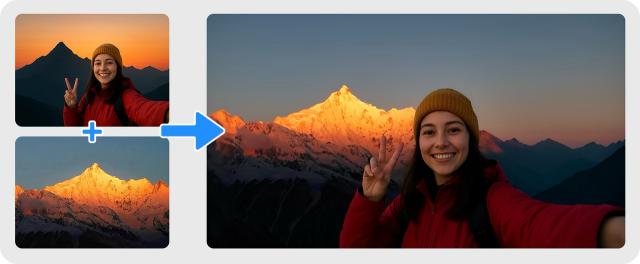 比如下图案例,遗憾错过日照金山,直接用 Vidu Q1 参考生图将背景换成日照金山的背景,即刻生成人生照片。