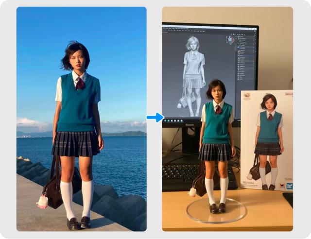 当然最近很火的手办玩法,Vidu Q1 参考生图也能稳定发挥,不仅支持二次元转手办,还可以让真人直接变成桌面手办,与真人简直神同步。