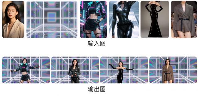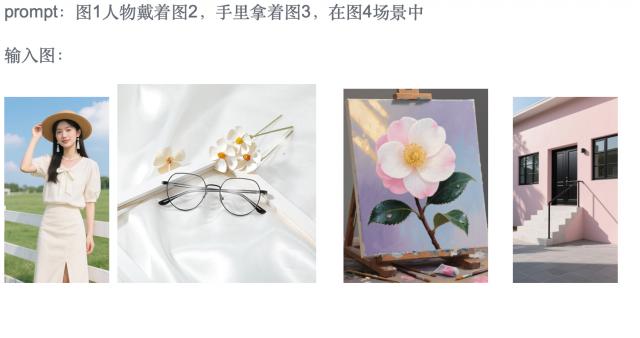 4. 创作自由度极高,一张图 + 一句提示词,就能自由换装、换背景、自由合成。支持多人同场景或者多人多场景,满足复杂剧情、合影、多角色电商等场景。